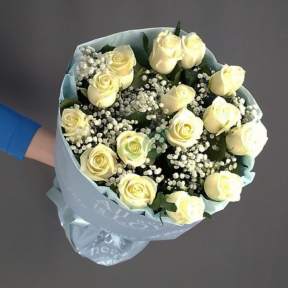 • Роза - 15 штук, цвет - белый;